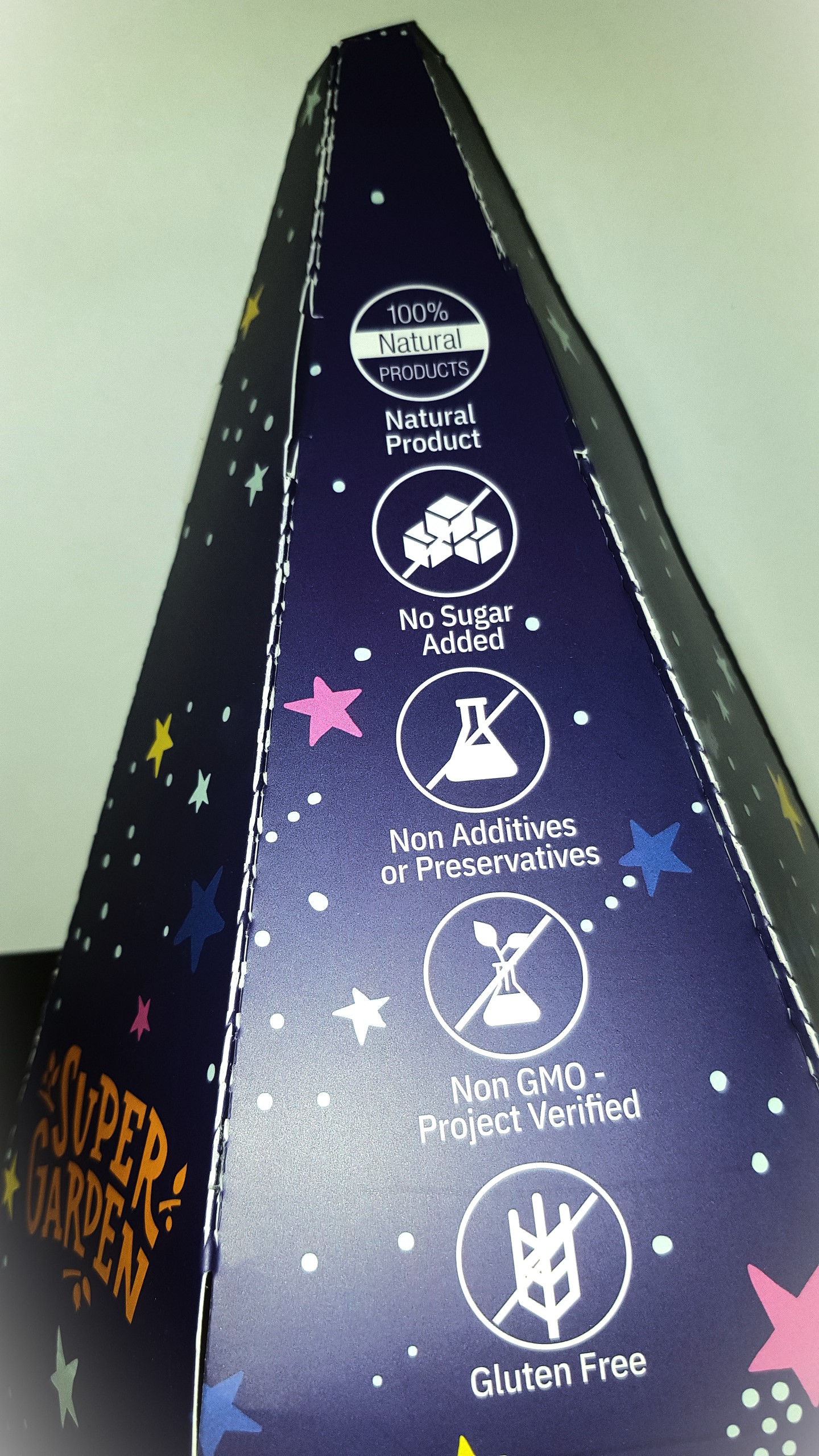 Külmkuivatatud ananassid, mangod, banaanid, mustsõstrad, karusmarjad, vaarikad, maasikad, mustikad, tomatid, herned, peedid, porgandid, õunad, pirnid, jõhvikad, maasikad, kirsid, karusmarjad, astelpaju, paprikad, pohlad, granaatõunad. Sisaldab herneproteiini isolaati ja kakaovõid.