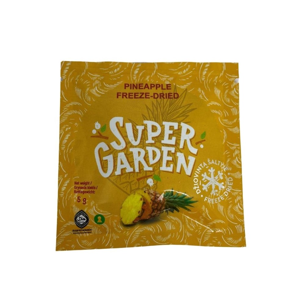 Meie ananassid külmkuivatatakse kohe pärast koristamist. Nii säilivad täielikult nende toiteväärtus ja maitse! Supergardeni külmkuivatatud ananass on söömiseks valmis, 100% looduslik ja ilma lisatud suhkru, säilitusainete või lisaaineteta.