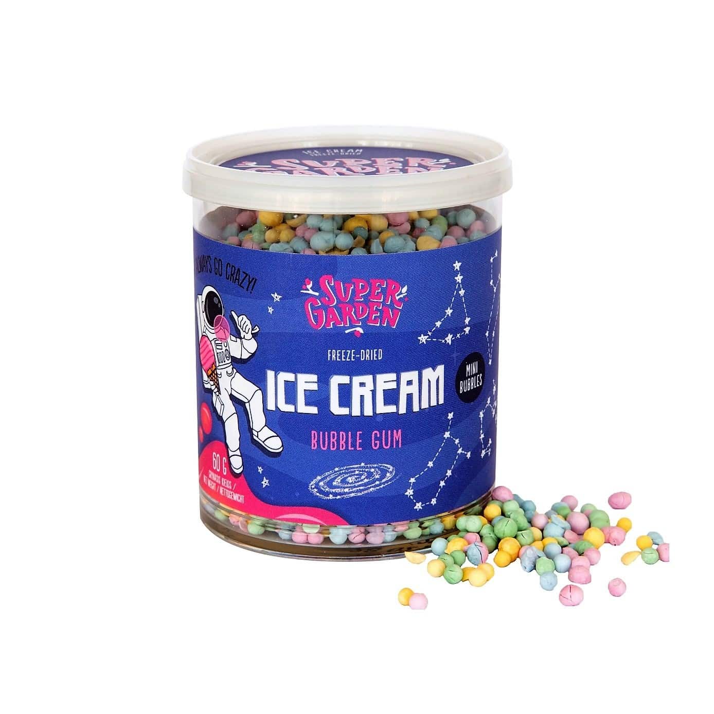 Külmkuivatatud minijäätisepallid, mille maitse meenutab lapsepõlves armastatud närimiskummi, on uusim hitt maiustuste maailmas! Võrreldes traditsioonilise jäätisega on nende suurim eelis see, et nad säilivad sulamata isegi toatemperatuuril. Eriline külmkuivatusprotsess annab neile omapärase krõmpsuva ja rabeda tekstuuri, mis muudab iga suutäie unustamatuks.