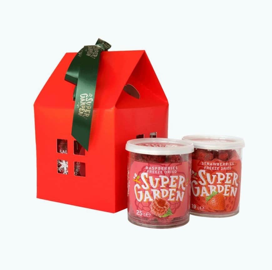 Punane kinkekarp “Väike maja” mahutab ühe külmkuivatatud viljade purgi. Ilus ja südamlik kinkekarp, millega saad oma lähedasele, kaastöötajatele või koostööpartneritele kinkida maitsva kingituse. Kui soov on kinkida rohkem topse, siis selleks on meil pakkuda kinkekarp suur maja, kuhu mahub sinu poolt valitud kaks topsi, või kui soovid kinkida lausa 4 topsi, siis vaata ilusaid punaseid kinkekarpe 4 topsile.